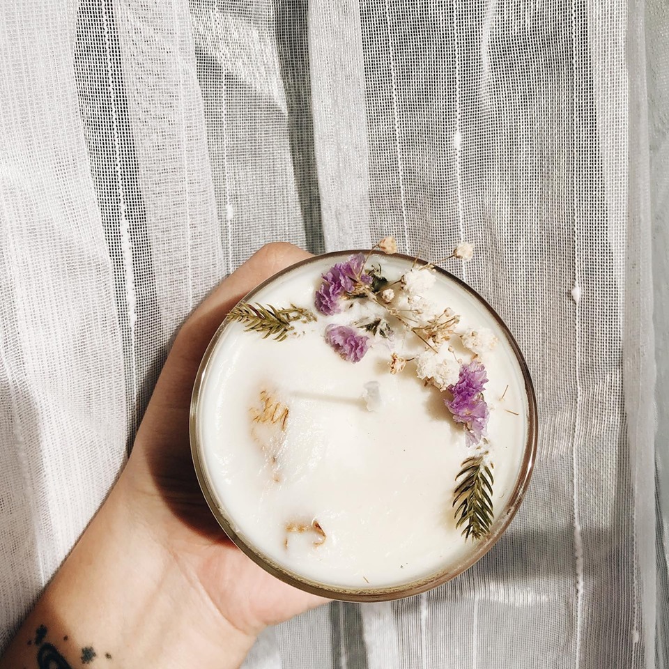 เทียนหอมไขถั่วเหลือง แต่งดอกไม้แห้ง